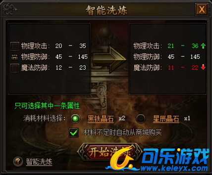 3、开始洗炼前必须先选择其中一条属性,已满属性无法选取;