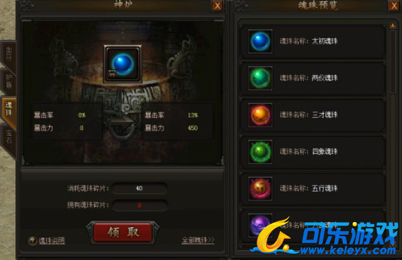 玩家可通过点击主界面的神炉图标进入魂珠领取界面: