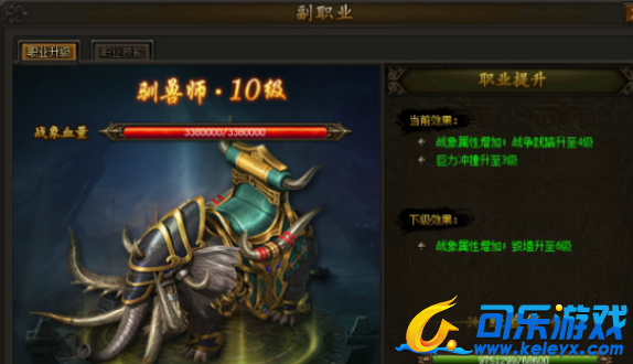 传奇霸业游戏中转职副职业成为驯兽师以后可以召唤大象,骑乘后可对敌人的建筑造成高额伤害,还可以发起重踏推开周围的玩家,同时驯兽师还可以对大象进行培养,永久提高大象的基础属性。随着职业等级提升,驯兽师可以获得多个技能,这些技能直接生效;驯兽师部分技能有最大等级上限,提升职业等级可提升该技能等级上限。击杀地图内野兽怪物掉落驯兽师经验丹,使用经验丹可以提升副职业等级。