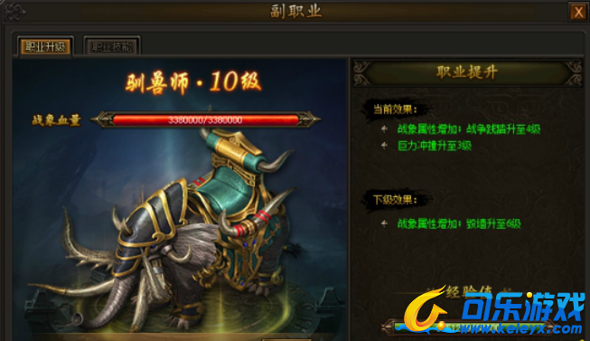 传奇霸业游戏中转职副职业成为驯兽师以后可以召唤大象,骑乘后可对敌人的建筑造成高额伤害,还可以发起重踏推开周围的玩家,同时驯兽师还可以对大象进行培养,永久提高大象的基础属性。