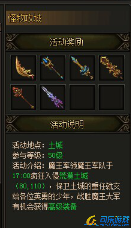 在可乐游戏传奇霸业中5-7转装备哪里获取好?那其中一个怪物攻城玩法就能有获取此装备机会哦。今天就给大家说说传奇霸业中的怪物攻城具体玩法。