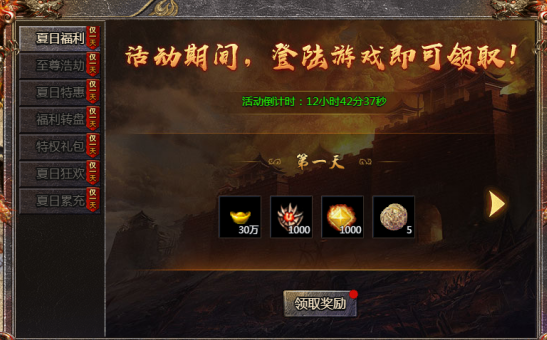 活动内容:登录游戏就能领取福利。