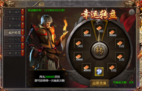 活动内容:活动期间充值到相应额度就能获得转盘次数,海量灵符等你来拿!