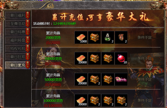活动内容:活动当天,累计充值可领取豪华大礼!
