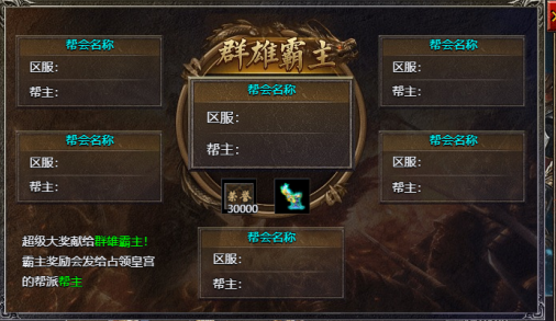 10.活动结束时,获得皇宫归属权的帮派成为皇宫占领者,成为本次活动的胜利者,其帮主为群雄霸主