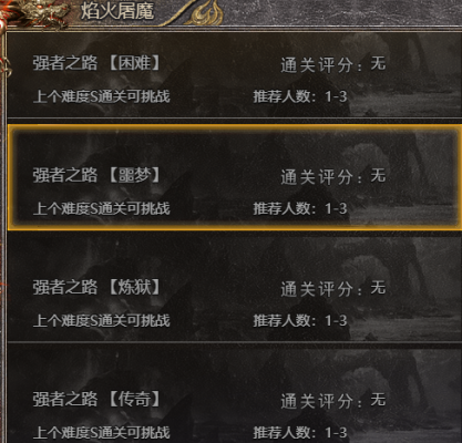 2、玩家可通关焰火屠魔后继续挑战强者之路