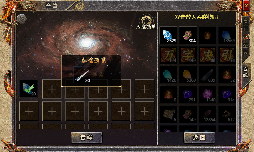 2. 玩家可放入道具材料至系统内,吞噬后获得其他道具材料