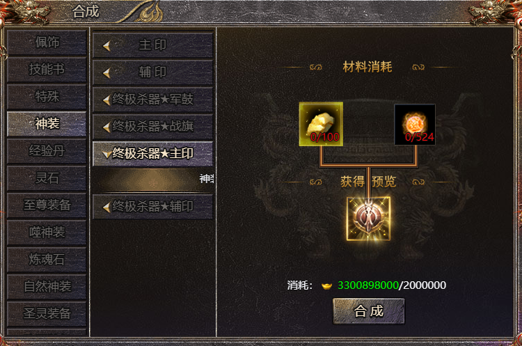 1、开服70天后,玩家可在合成中合成终极杀器★主印