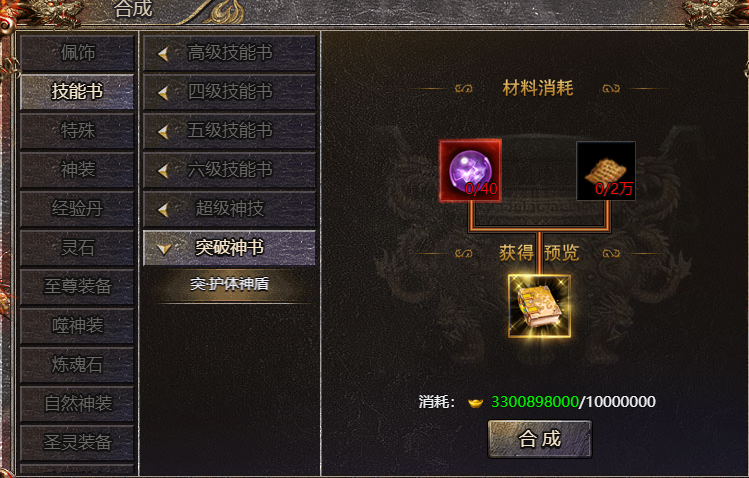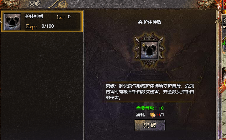 1、玩家学习技能后,可以消耗材料进行突破