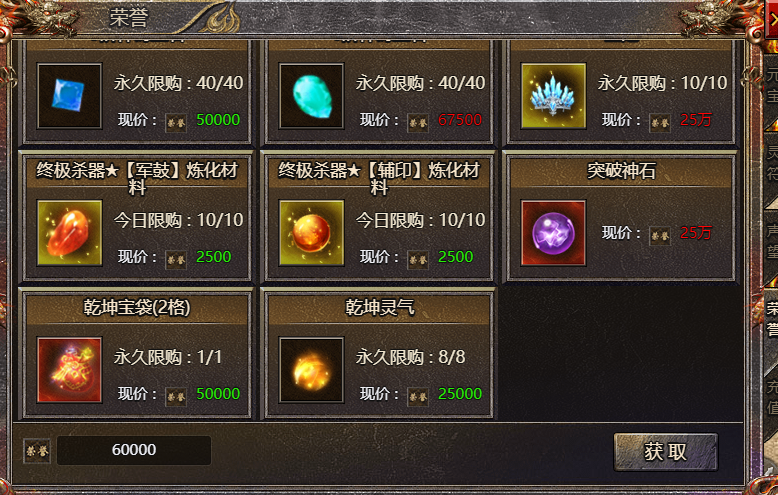 1、开服70天后,玩家可在声望商城与荣誉商城各购买一个乾坤宝袋(2格)