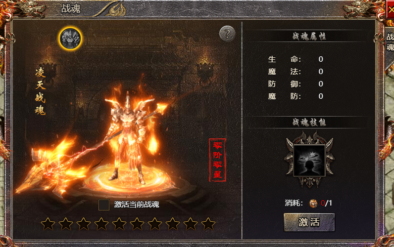4、使用战魂精元可以提升战魂星数,每满10星可以提升到下一阶