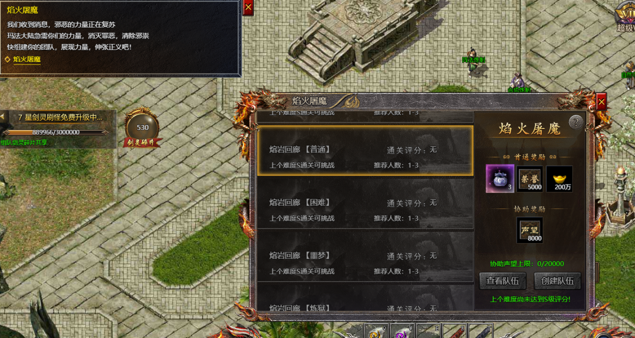 2、玩家在通关焰火屠魔和强者之路后,可以组队通关熔岩回廊