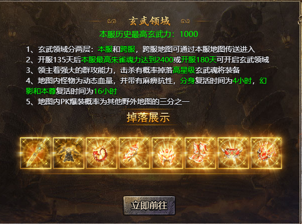 2、开服135天后本服最高朱雀魂力达到2400或开服180天可开启玄武领域