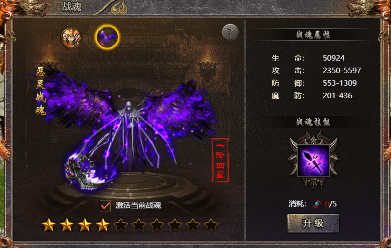 3、使用战魂精元可以提升战魂星数,每满10星可以提升到下一阶