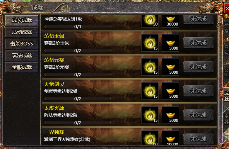 2、玩家达成成就后,可以获得宝器精华,用于升级宝器