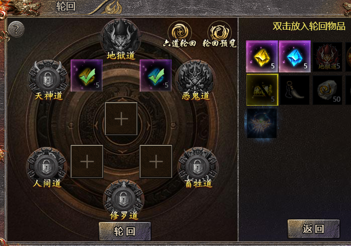 2、将轮回系统升至指定等级后,可以解锁六道系统