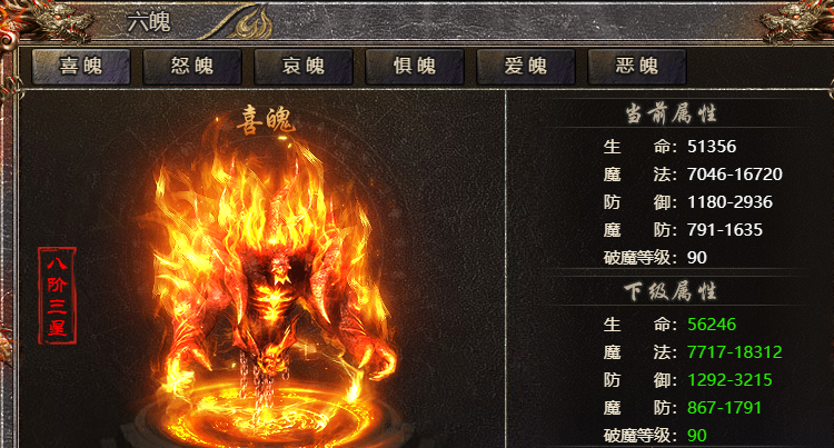 2、玩家可在六魄领域获得六魄晶石和六魄之心,升级六魄