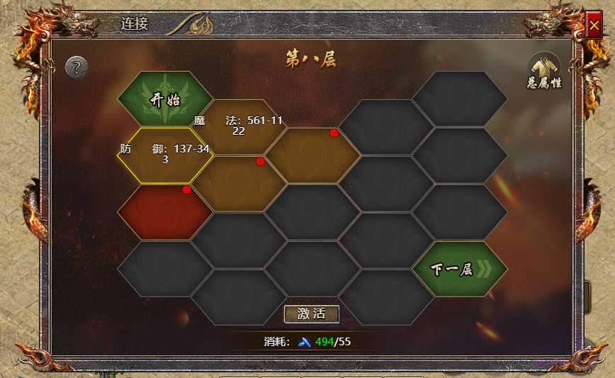2、每层19个格子,除了开始与下一层外,共计17个属性格子。
