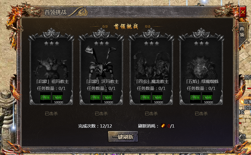 1、可乐游戏《传奇霸主》首领挑战每日可完成12次