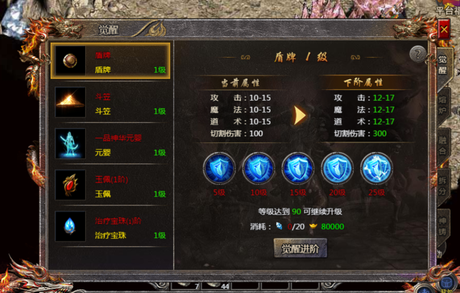 1、可乐游戏《传奇霸主》勋章、疗伤神石、玉佩可进行觉醒,觉醒后可增加攻击和切割伤害