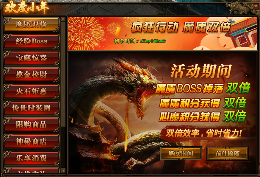 1.活动期间,玩家进入魔魇地图击杀魔魇BOSS可获得双倍掉落,获得魔魇、心魔积分翻倍;
