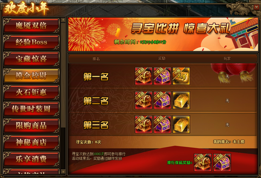 1.活动期间,玩家寻宝次数达到1000次即可参与到摸金校尉排行榜中