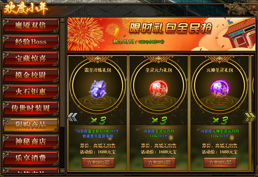 1.活动期间,玩家可在活动面板购买限购商品;(可翻页)