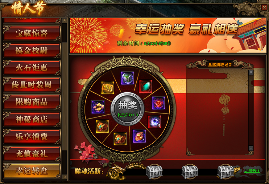 - [05-14]传奇世界5月16日-5月18日龙腾庆典活动 幸运转盘开启