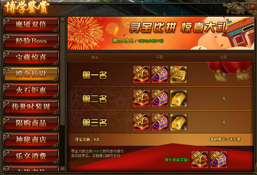 1.活动期间,玩家寻宝次数达到1000次即可参与到摸金校尉排行榜中