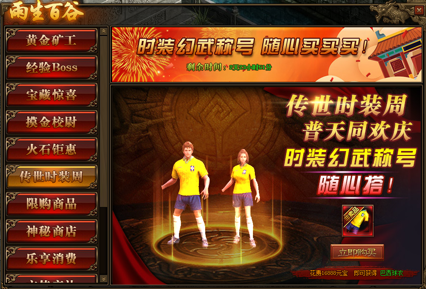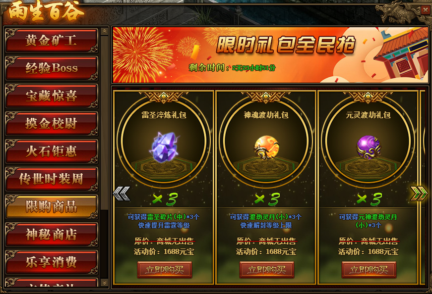 1.活动期间,玩家可在活动面板购买限购商品;(可翻页)