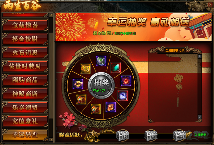 - [05-14]传奇世界5月16日-5月18日龙腾庆典活动 幸运转盘开启