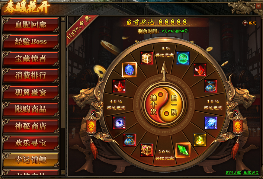4.豪华奖池,100%中奖,更可称为传世锦鲤,领走奖池元宝!