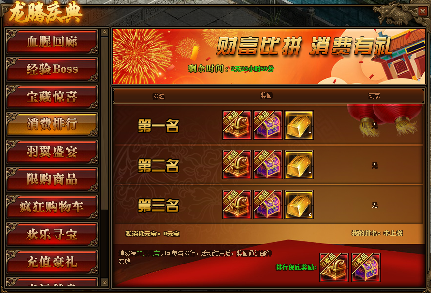 第三名:名列前茅自选宝箱,传世灵器随机宝箱*1,金条(300w)*2;
