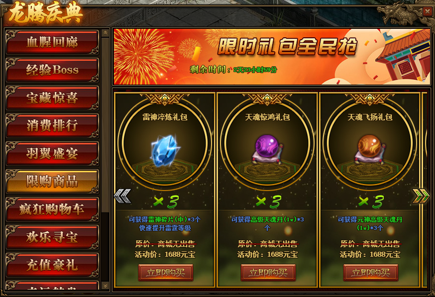 1.活动期间,玩家可在活动面板购买限购商品;(可翻页)