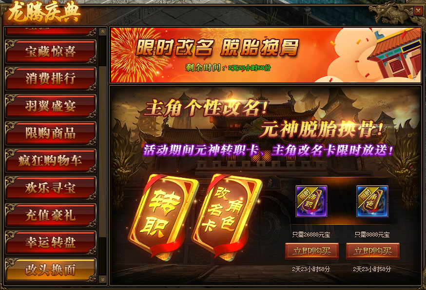 2.活动期间,玩家可在活动面板中购买主角改名卡,让你的名字个性十足;