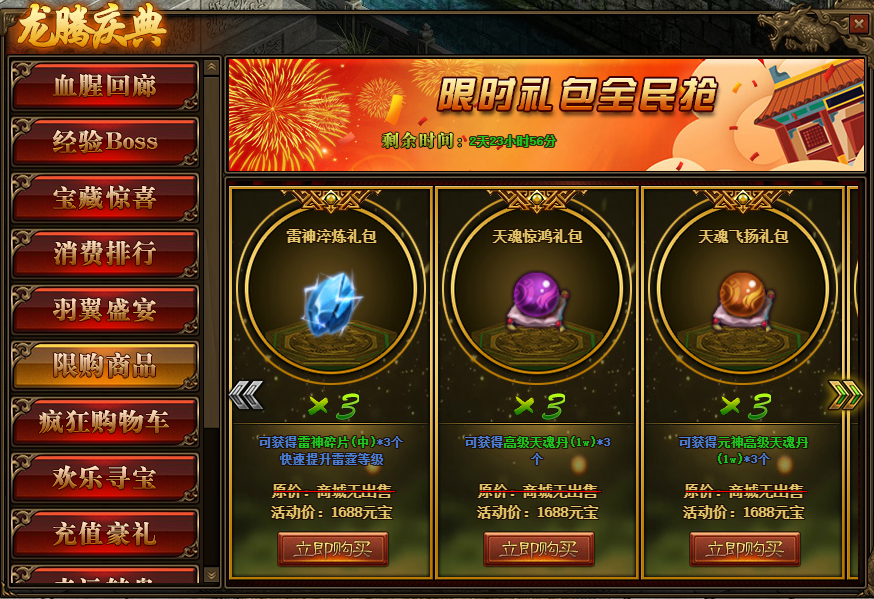 1.活动期间,玩家可在活动面板购买限购商品;(可翻页)