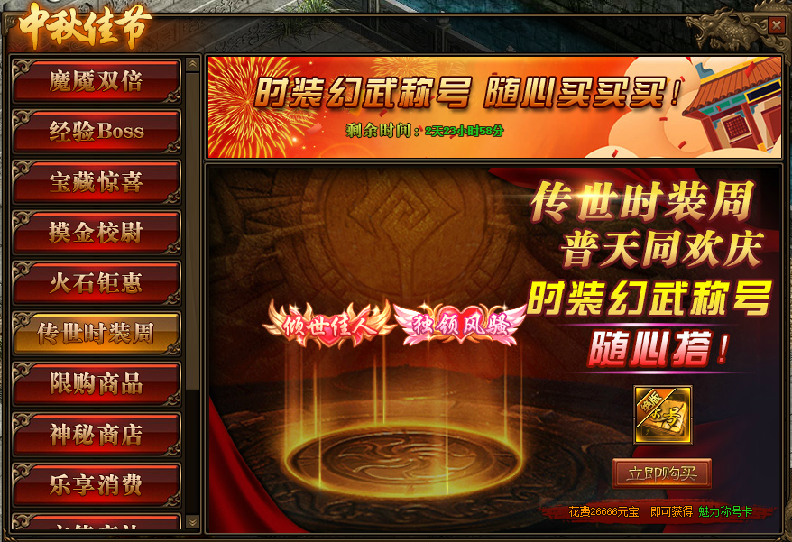 1.活动期间,玩家可在活动面板购买限购商品;(可翻页)