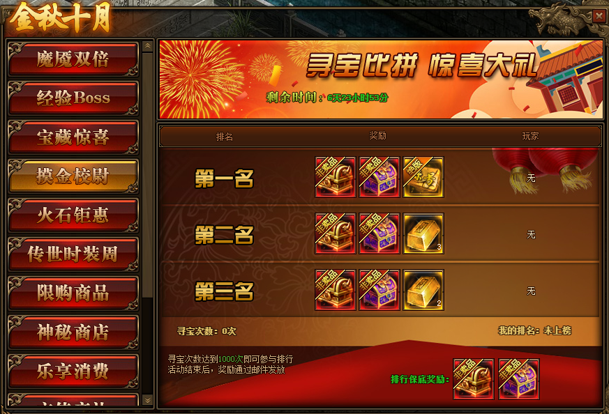 1.活动期间,玩家寻宝次数达到1000次即可参与到摸金校尉排行榜中