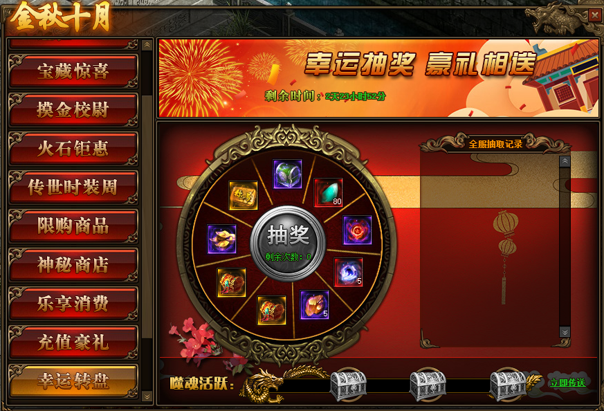 - [10-09]传奇世界10月10日-10月12日秋季回馈活动 幸运转盘开启