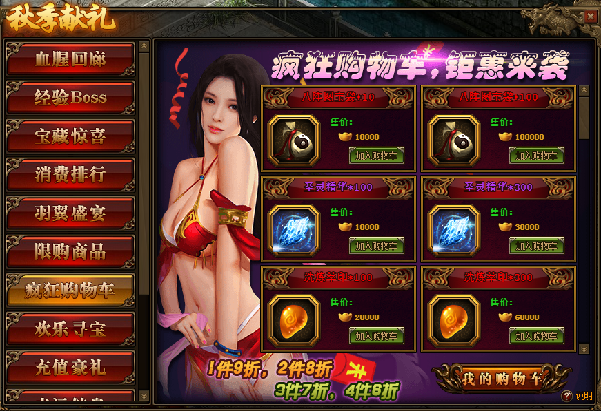 1.活动期间,玩家可在将碧落星空、龙纹福袋等物品放入我的购物车;