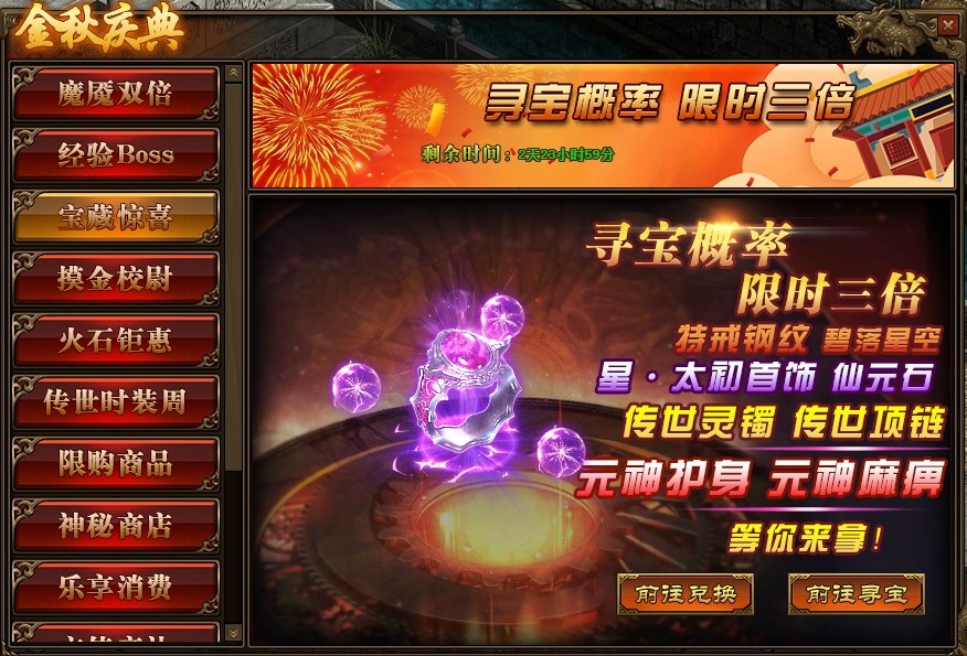 - [11-16]传奇世界11月17日-11月19日秋季回馈活动 宝藏惊喜来袭