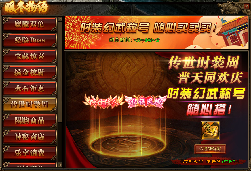 1.活动期间,玩家可购买稀有称号;