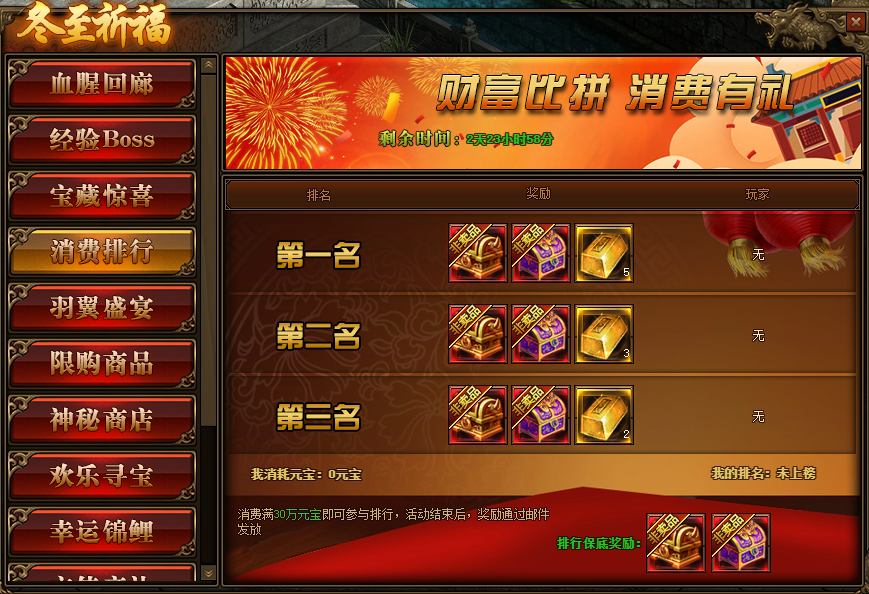 第三名:名列前茅自选宝箱,传世灵器随机宝箱*1,金条(300w)*2;
