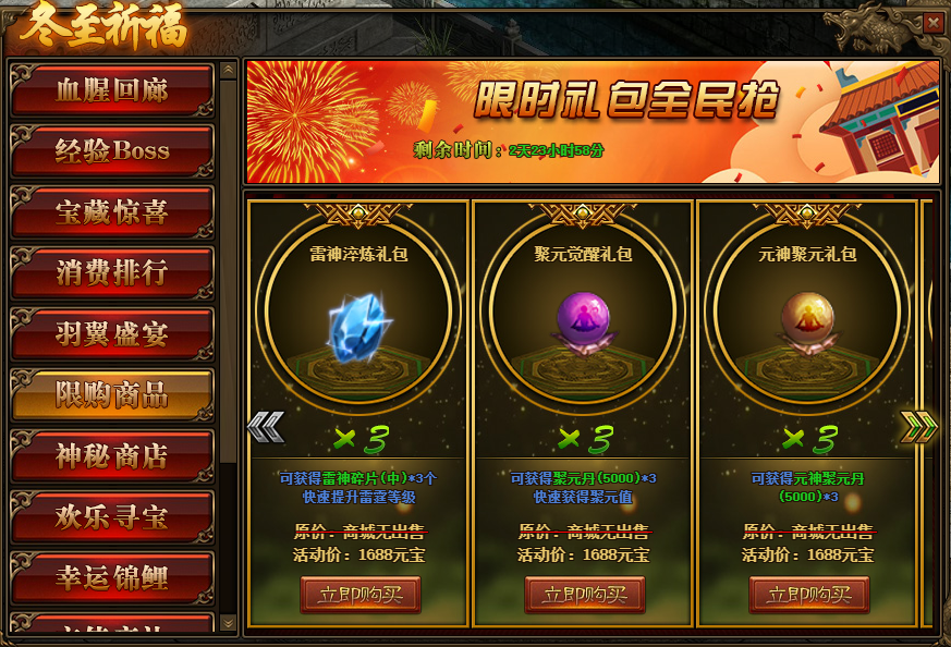 1.活动期间,玩家可在活动面板购买限购商品;(可翻页)