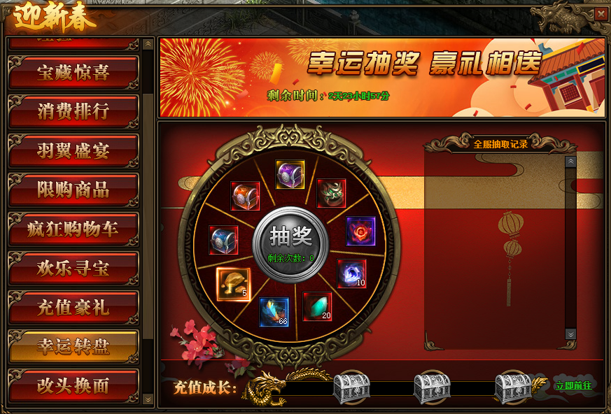 1.活动期间内,每日充值可增加充值成长值,达到一定充值成长值后可领取抽奖次数,每日最多获得3次抽奖机会;
