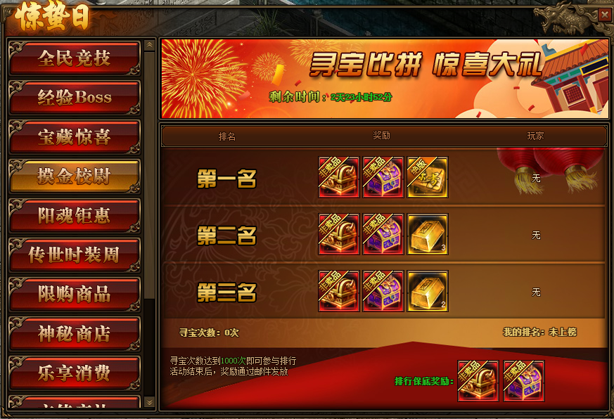 1.活动期间,玩家寻宝次数达到1000次即可参与到摸金校尉排行榜中