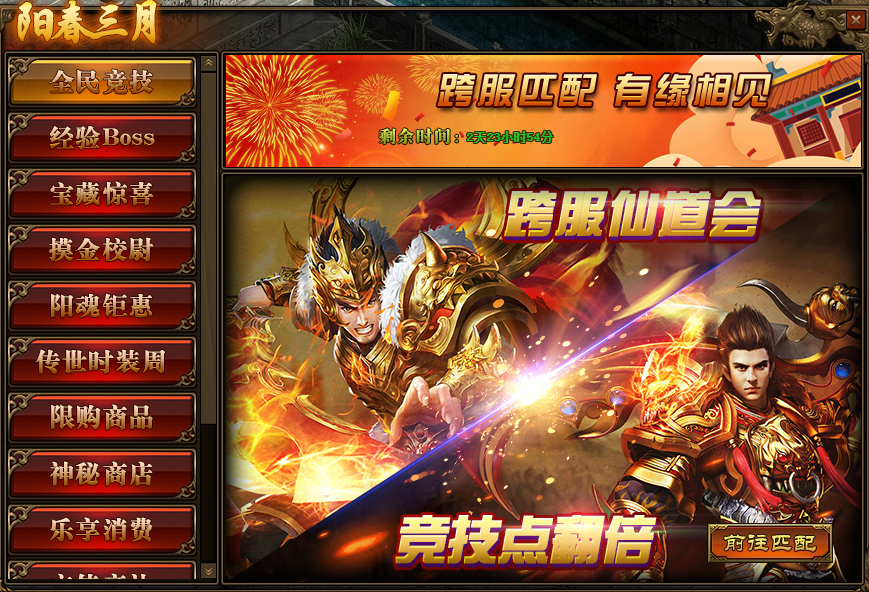 1.活动期间,玩家参与跨服仙道会3V3或5V5匹配,获得“竞技点”翻倍;