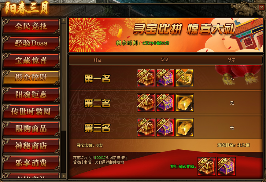 1.活动期间,玩家寻宝次数达到1000次即可参与到摸金校尉排行榜中