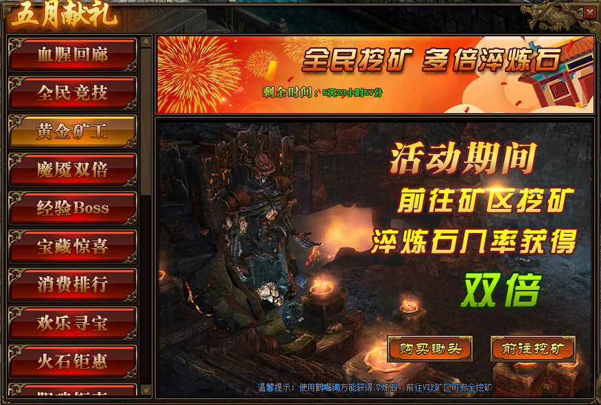 2.注意:必须使用“鹤嘴锄”才可获得“淬炼石”,在VIP矿区可安全挖矿;