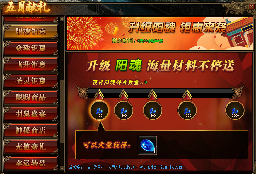 1.活动期间,玩家获得阳魂碎片数量,达到条件可领取对应阳魂碎片奖励。